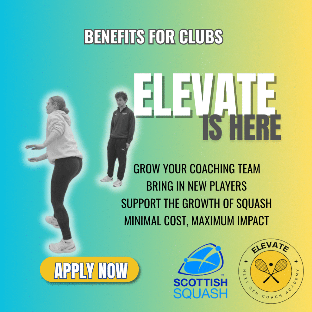 Would your club like to grow its own coach and support the next generation of squash coach in Scotland? ELEVATE is the programme for you.