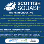 Two exciting opportunities to join the team at Scottish Squash are available. We’re looking for the right individuals to join us as Membership Engagement Officer and Club Development Officer (Women & Girls).