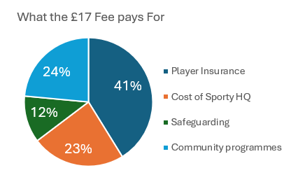 A percentage of the registration fee goes towards club administration, ensuring clubs meet safeguarding standards, respond to player concerns quickly and effectively and support child protection officers where needed.