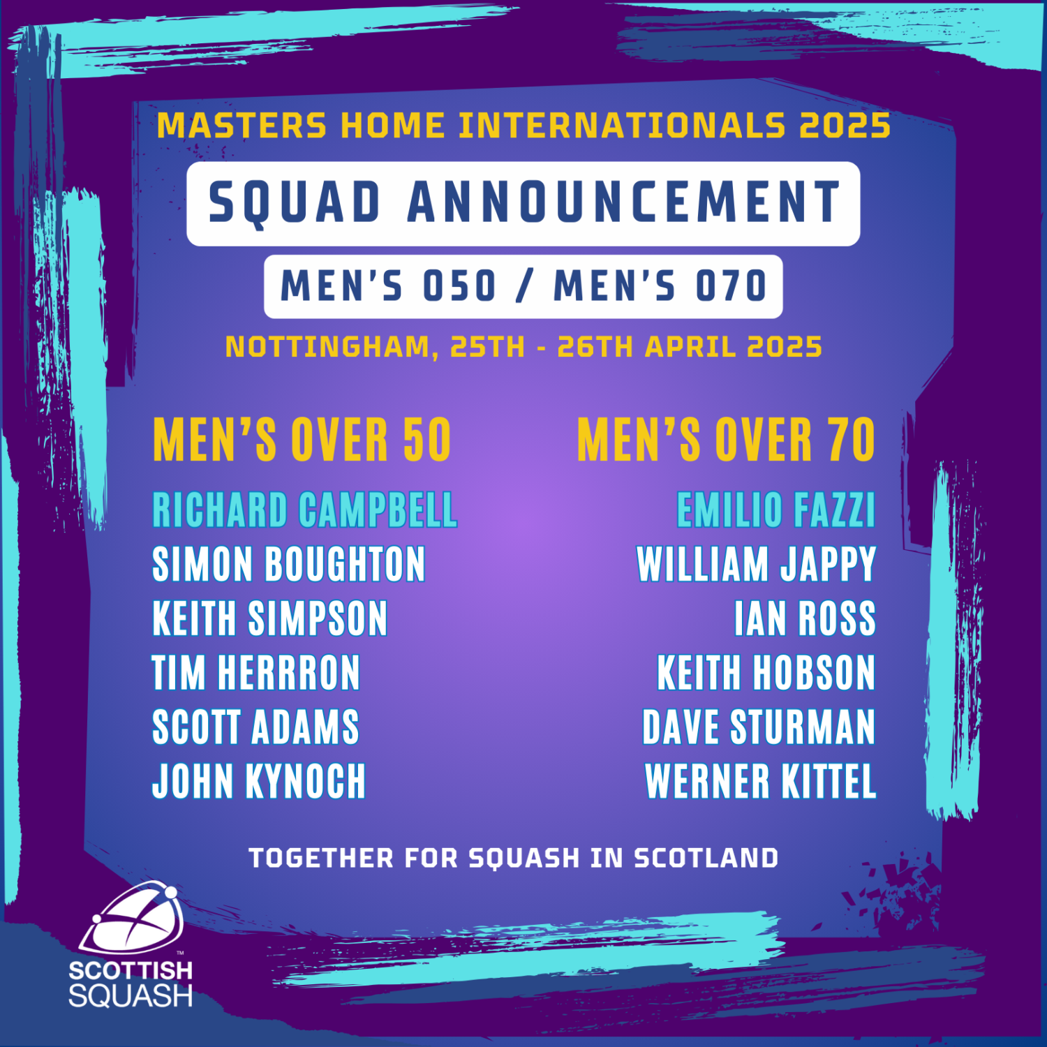 The excitement is building as Scotland prepares to compete in the highly anticipated Masters Home Internationals 2025. This prestigious annual event sees the best Masters squash players from Scotland, England, Ireland, and Wales battle for national pride across the Masters age categories.